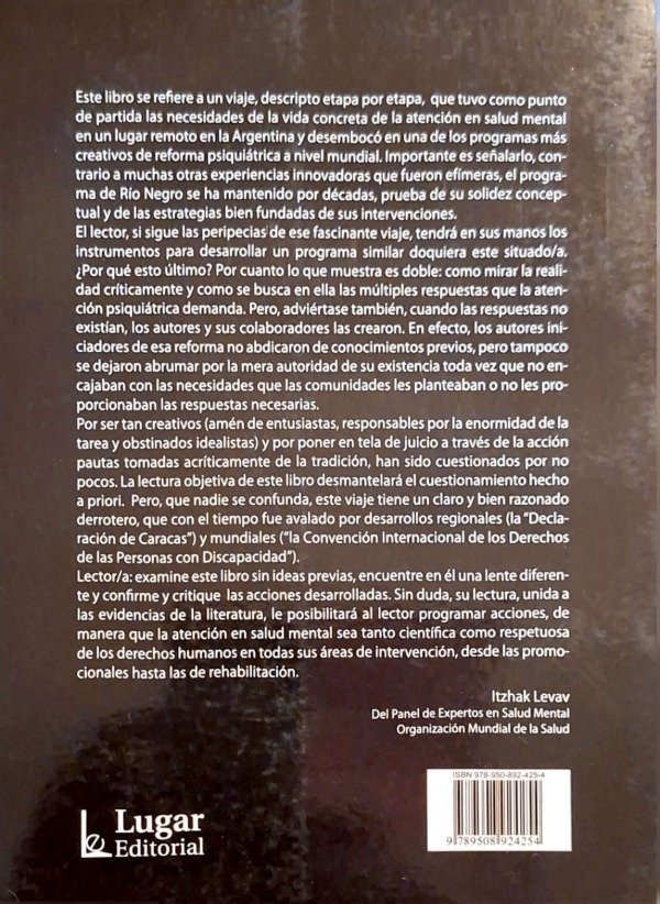 Sin duda, su lectura, unida a las evidencias de la literatura, le posibilitará al lector programar acciones, de manera que la atención en salud mental sea tanto científica como respetuosa de los derechos humanos, en todas sus áreas de intervención, desde las promocionales hasta las de rehabilitación.