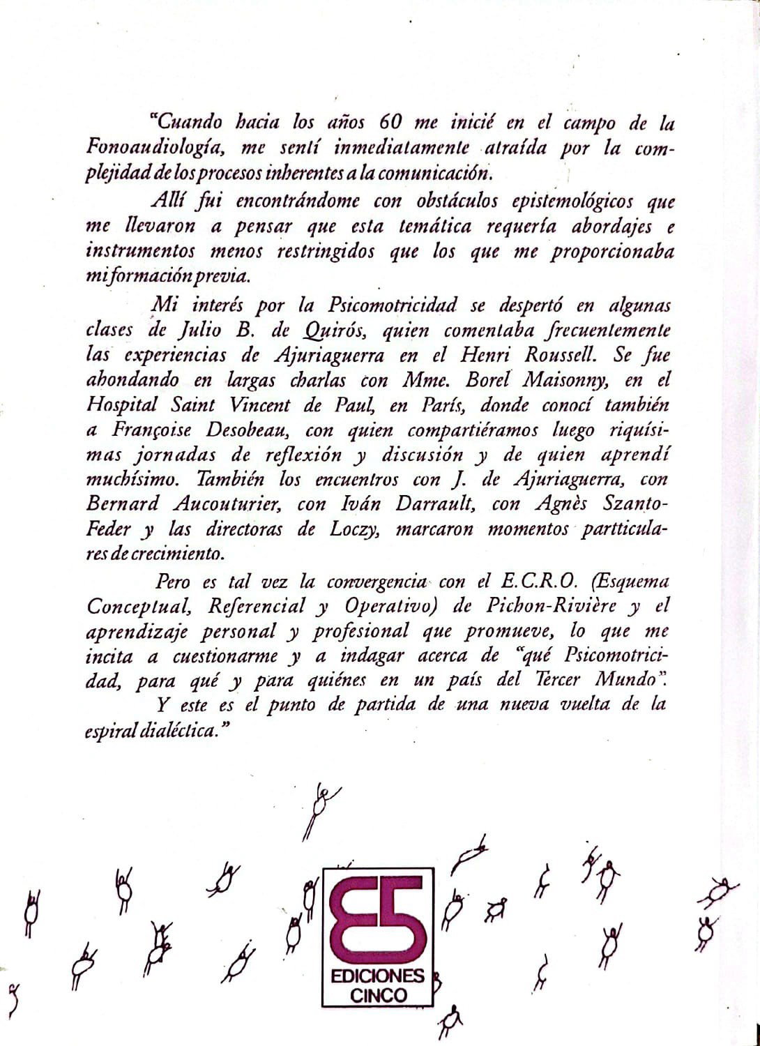 Myrtha Chokler. nos cuenta que la convergencia con el E.C.R.O. (Esquema Conceptual, Referencia y Operativo) de Pichón Riviere, y el aprendizaje personal y profesional que promueve, lo que la incita a cuestionarse y a indagar acerca de "que Psicomotrocidad, para qué y para quienes en un país del Tercer Mundo".