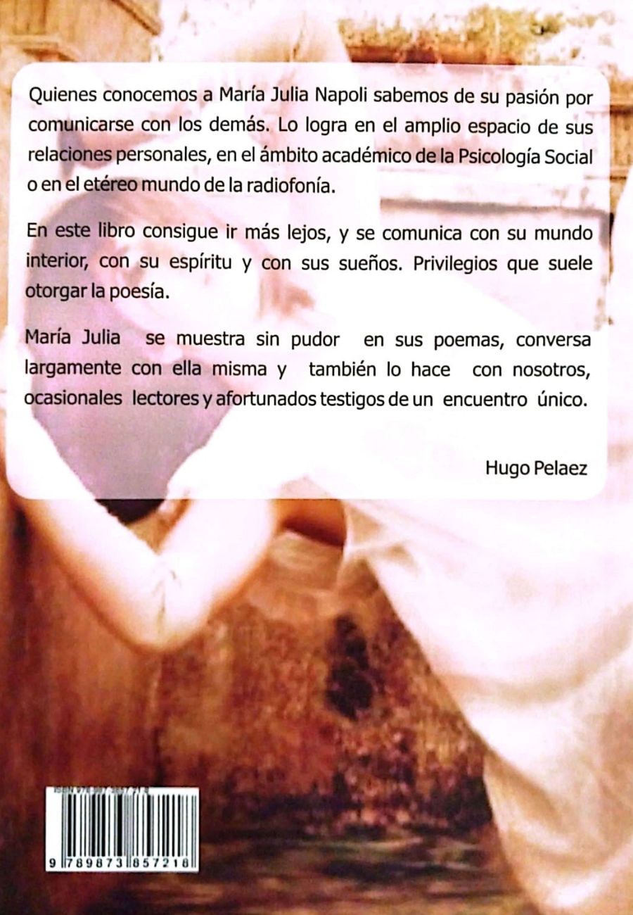 María Julia se muestra sin pudor en sus poemas, conversa lárgamente con ella misma y también lo hace con nosotros, ocasionales lectores y afortunados testigos de un encuentro único.