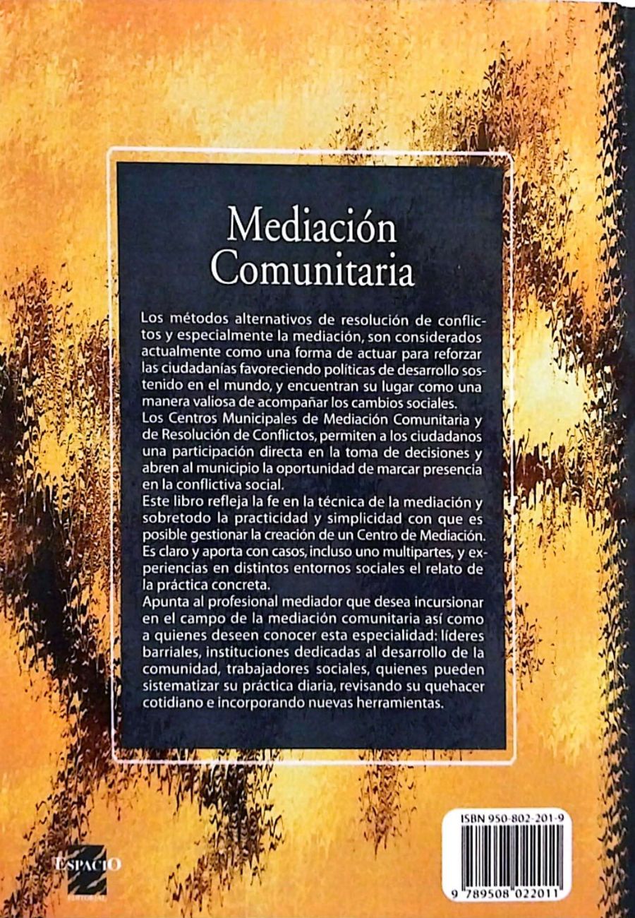 Este material apunta al profesional mediador que desea incursionar en el campo de la mediación comunitaria así como a quienes deseen conocer esta especialidad; líderes barriales, instituciones dedicadas al desarrollo de la comunidad, trabajadores sociales, quienes pueden sistematizar su práctica diaria, revisando su quehacer cotidiano e incorporando nuevas herramientas.