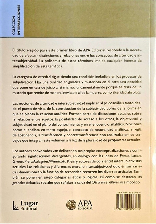 Las relaciones y diferencias entre lo intersubjetivo, el otro en sus variadas dimensiones y la función de terceridad recorren los diversos artículos.